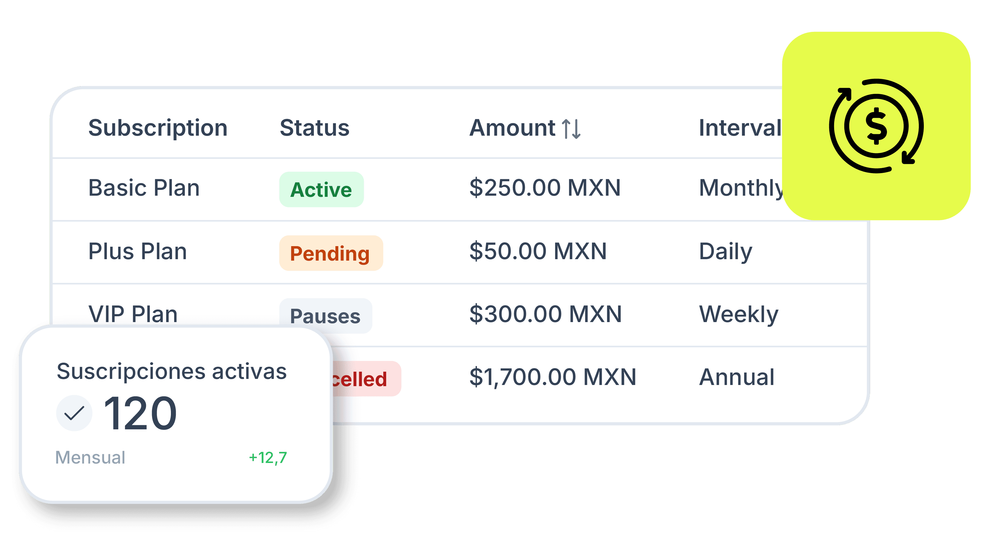Manage recurring payments for your platform or application.